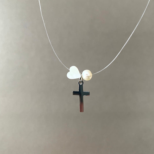 Nevidljiva ogrlica s bijelim srcem i biserom